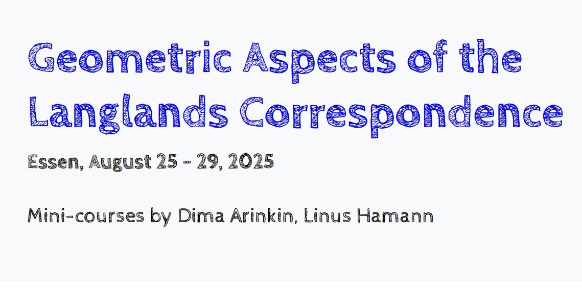 Vom 25. bis 29. August 2024 findet die Sommerschule Geometrische Aspekte der Langlands-Korrespondenz in Essen statt. Dima Arinkin und Linus Hamann werden Mini-Kurse halten, darüberhinaus gibt es einige Einzelvorträge. Die Anmeldung ist ab sofort möglich.